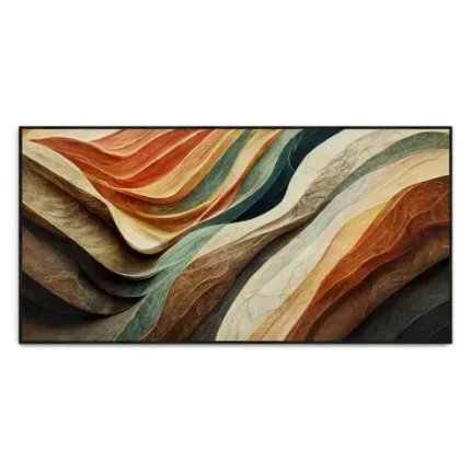 Impressão em Vidro Abstrato Formas e Elementos Orgânicos em Tons de Terracota e Azul | Quadro Decorativo Preto