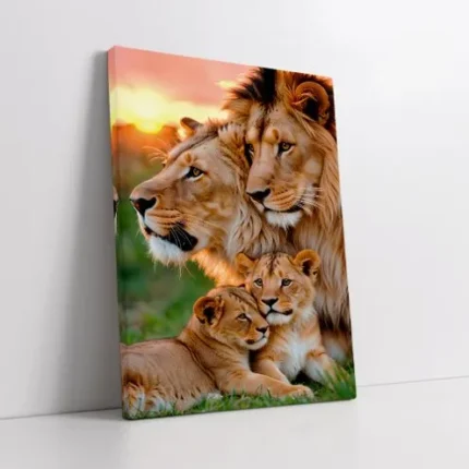 Tela Canvas Animal Vertical Família de Leão com 2 Filhotes II | Quadro Decorativo