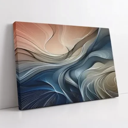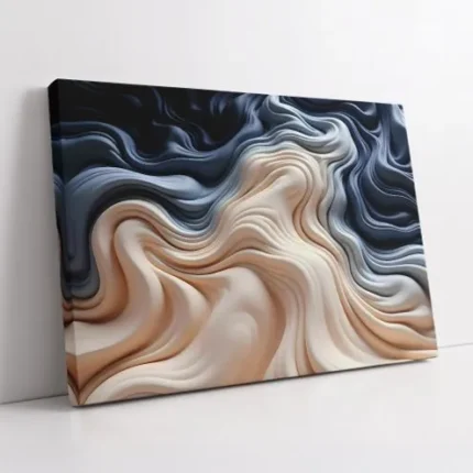 Tela Canvas Abstrato Fluido com Tons de Azul e Bege II | Quadro Decorativo