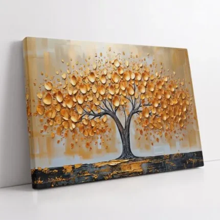 Tela Canvas Floral Árvore da Vida com Folhas em Tons de Laranja | Quadro Decorativo Borda Infinita