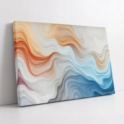 Tela Canvas Abstrato Fluido com Tons de Laranja Bege e Azul III | Quadro Decorativo